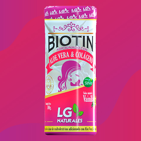 Biotin adicionado con Aloe Vera y Colágeno con sabor a Vainilla.