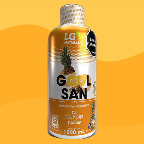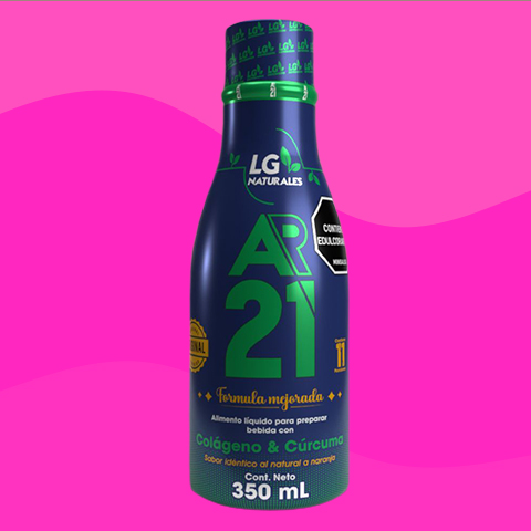 Alimento líquido para preparar bebida con Colágeno y Curcuma, sabor idéntico al natural a Naranja.