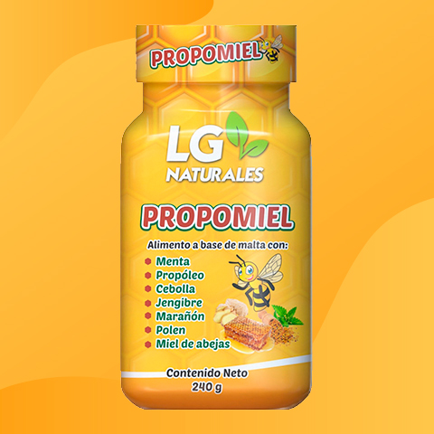 Alimento a base de malta con Menta, Propóleo, Cebolla, Jengibre, Marañón, Polen y Miel de Abejas.